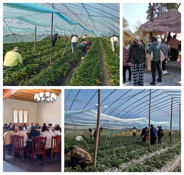 日上午,公司组织女员工到金东区诗后山村摘草莓、体验农家乐。